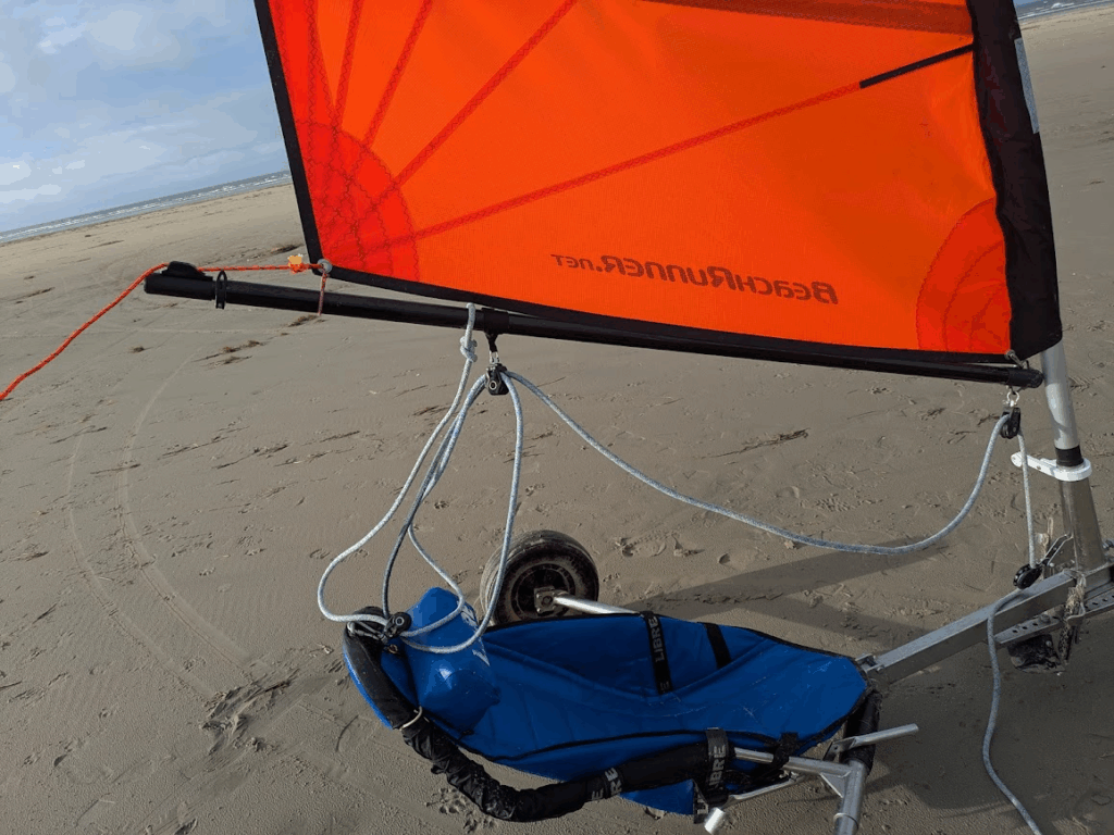 Den originale bom fra Libre er ikke stærk nok til min kørsel. Det måtte jeg indse efter en tur i god vind. Den begyndte at revne. (de røde pile viser hvor)